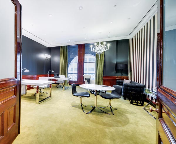With a concierge to greet you every morning in the opulent entrance foyer, simply arriving for work at 350 George Street provides a unique experience in itself. This sense of exclusivity continues throughout the building with many office suites being accessed via grand heritage entry doors that lead off the generous corridors surrounding the atrium. This is even the case with some of the smaller suites that are ideal for sole practitioners or small partnerships. In addition to high ceilings and large windows, some offices enjoy their own balcony overlooking George Street. A well-appointed, shared Meeting Room is provided for the exclusive use of occupiers, and is ideal for presentations and business meetings being equipped with the latest technology, including wireless internet, presentation screen and Foxtel. Meeting Room bookings can be made through the concierge.